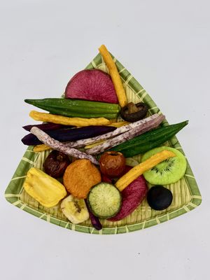 Hãy thưởng thức món ăn nhẹ đầy màu sắc và dinh dưỡng được làm từ 12 loại rau củ và trái cây khác nhau! Khoai tây chiên chân không của chúng tôi giữ được màu sắc, hình dạng và hương vị ban đầu nhờ công nghệ chiên ở nhiệt độ thấp tiên tiến. Không thêm đường hoặc chất bảo quản, đây là món ăn nhẹ hoàn hảo không gây cảm giác tội lỗi cho những người quan tâm đến sức khỏe. Cho dù bạn đang ở văn phòng, trong một chuyến đi đường hoặc đang tìm kiếm một món ăn nhẹ lành mạnh cho con bạn, hỗn hợp này mang đến cả độ giòn và dinh dưỡng!